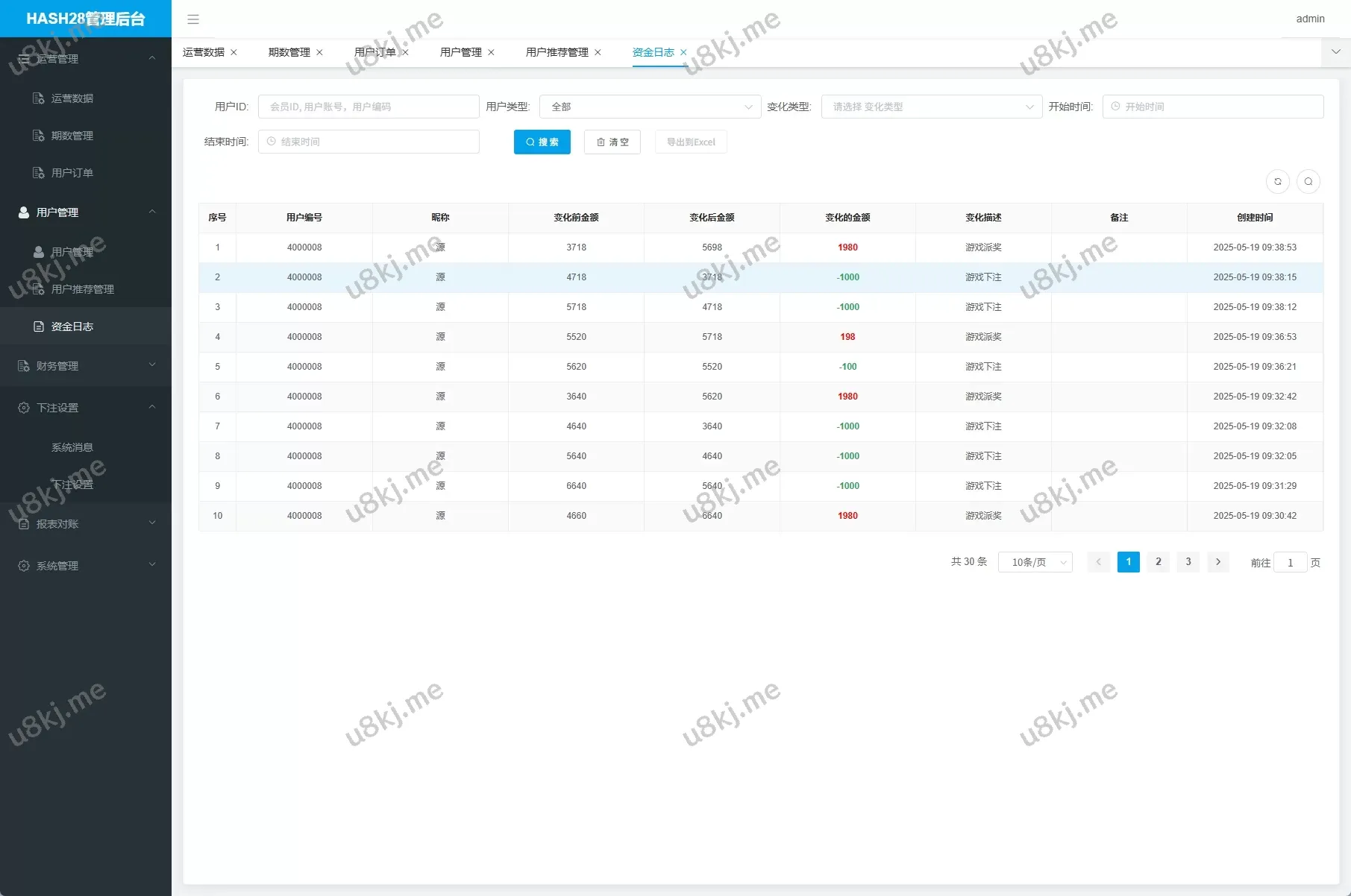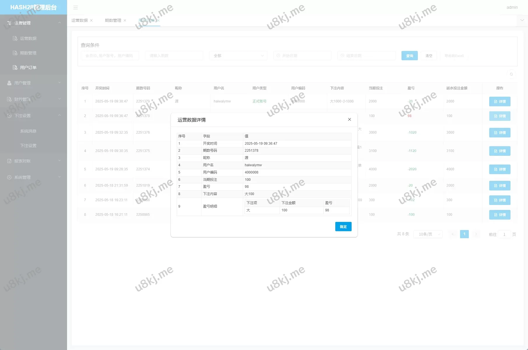 - 后台数据控制台:查看用户下注、输赢报表、上下分管理