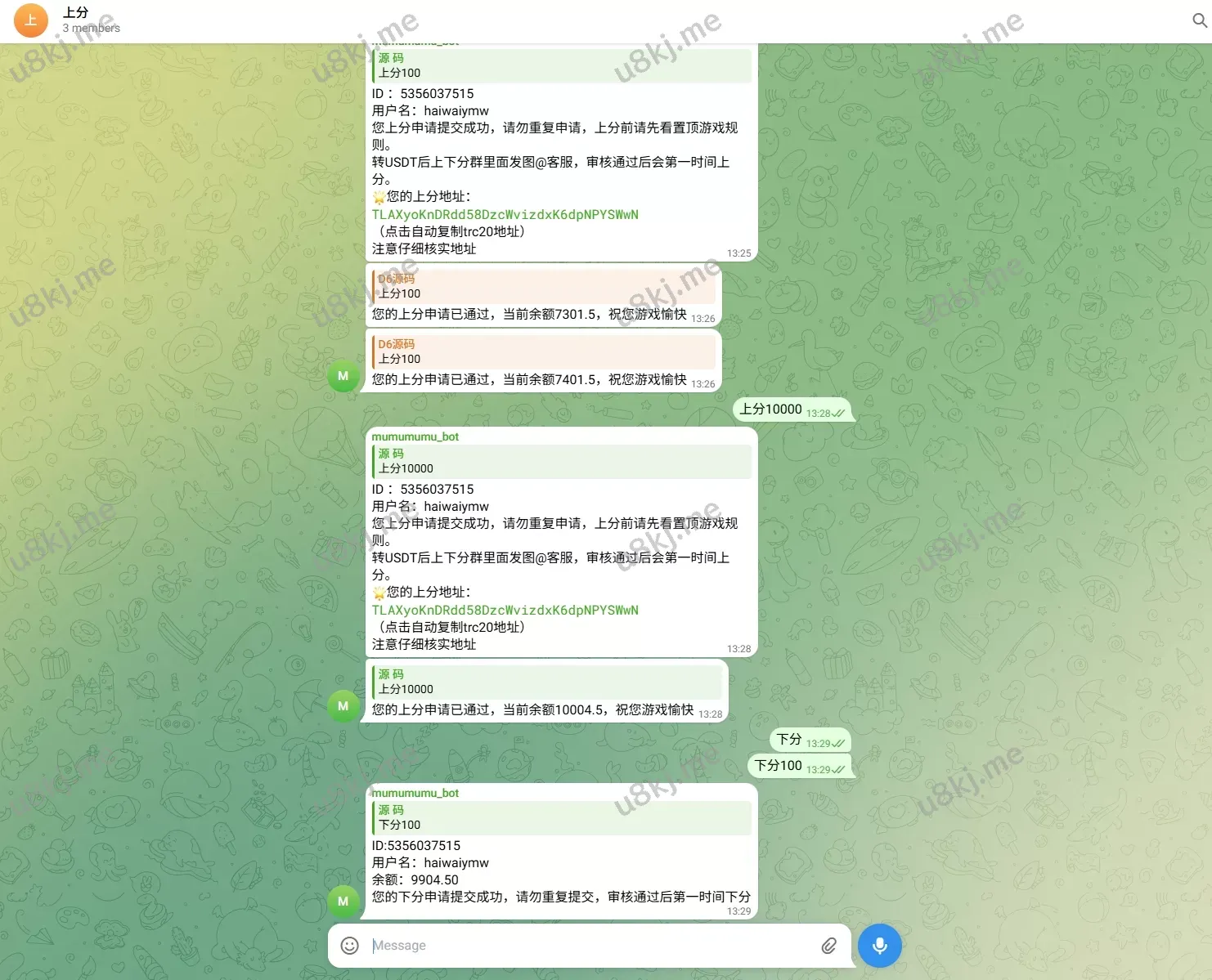 - 后台支持手动上下分、数据统计、会员管理