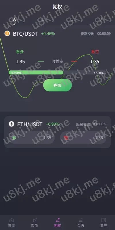 功能:币币交易,挖矿理财,申购新币,源码发行币,合约杠杆,秒合约交易,期权交易,平台币