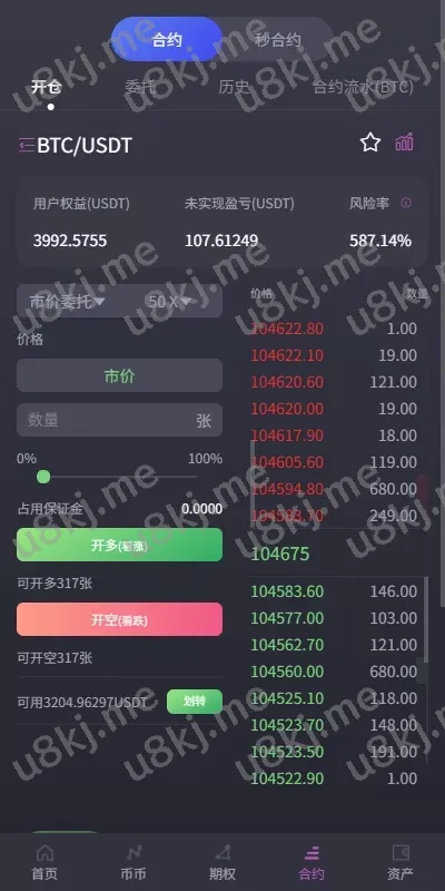 控制:秒合约单控,合约杠杆幅度上下浮控制