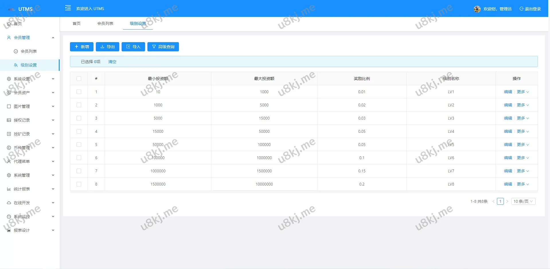 🔹 无限下线代理功能:平台支持无限开设下线代理,帮助用户扩展自己的业务网络。会员源码设定八个等级,每个等级有不同的权益,激励机制清晰。