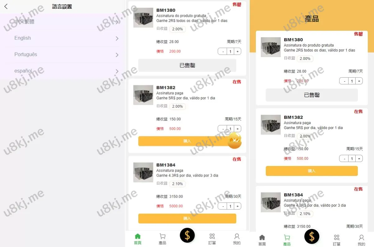 多国语言切换矿机投资源码/区块链矿机投资/任务邀请裂变/前端uinapp 源码