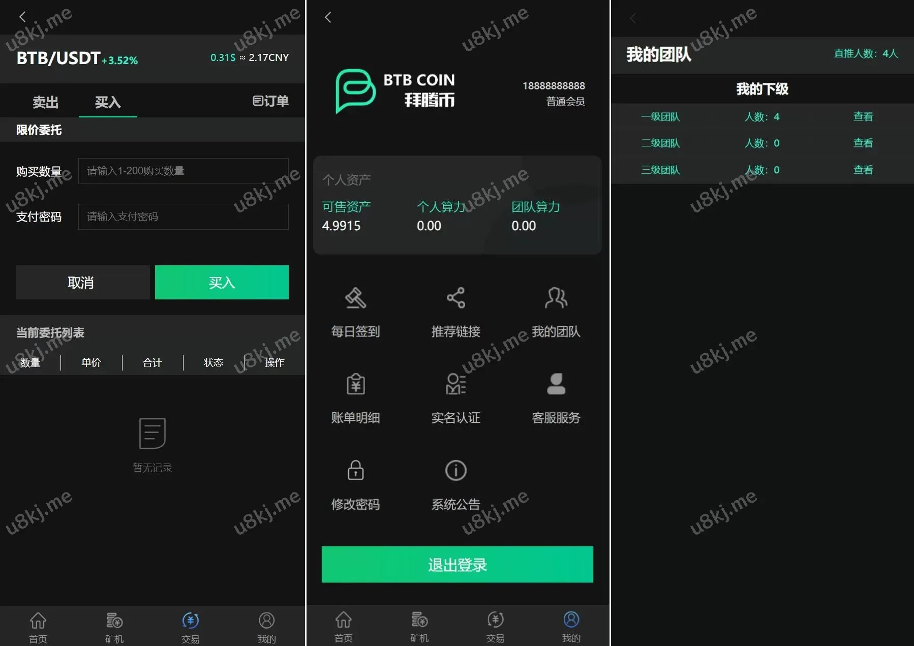 🔹 工会源码:四级工会源码,通过发展推荐团队达到一定的算力和人数,享受从矿机销售中提取的全球分红。