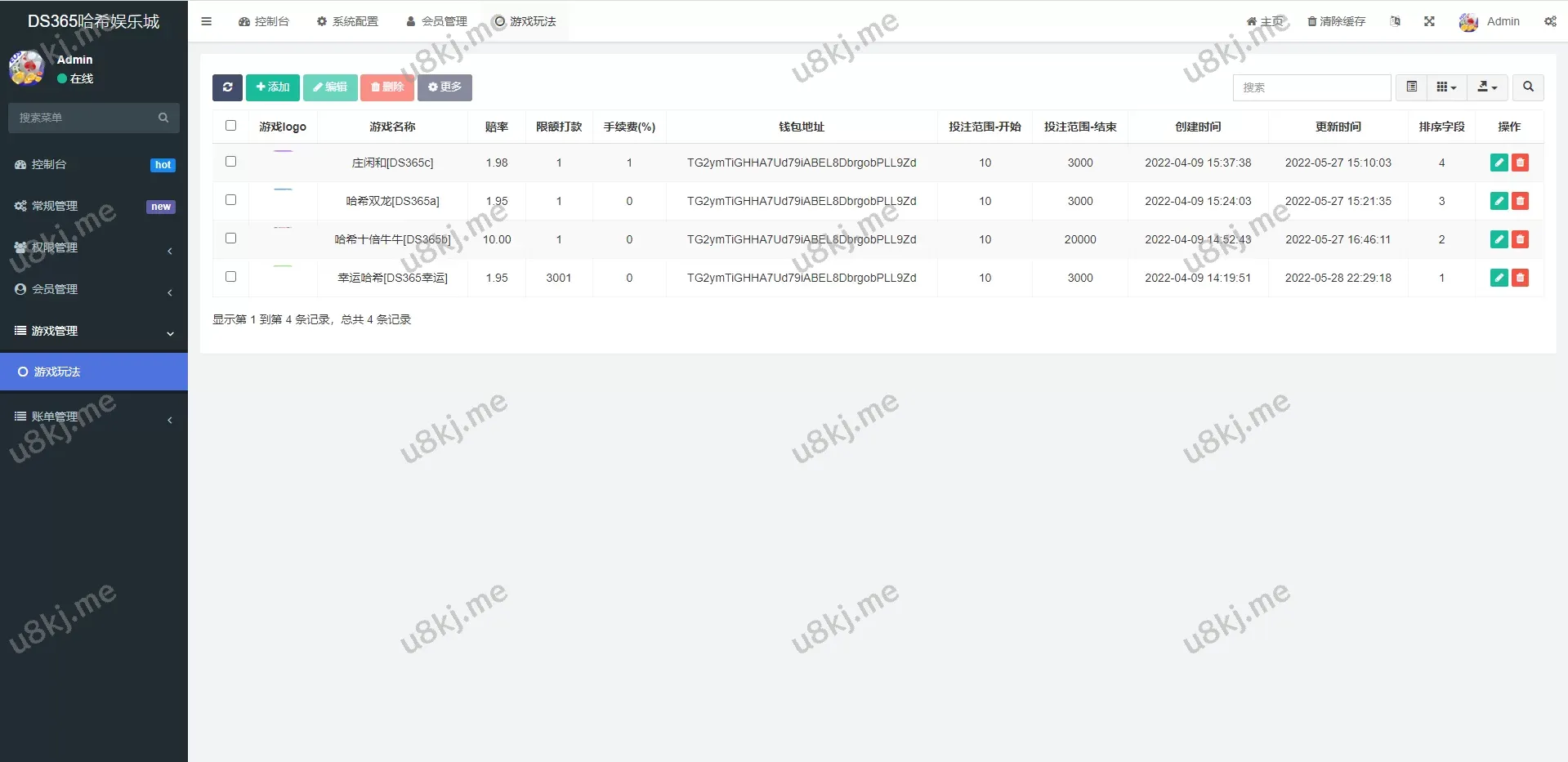 - 向游戏地址投注资金10-20000USD₮