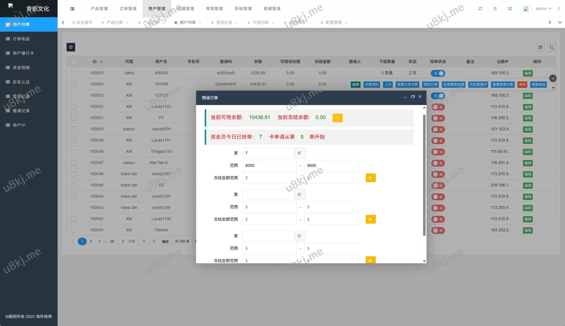 多国语言切换抢单刷单源码/预设订单/重置订单/签到