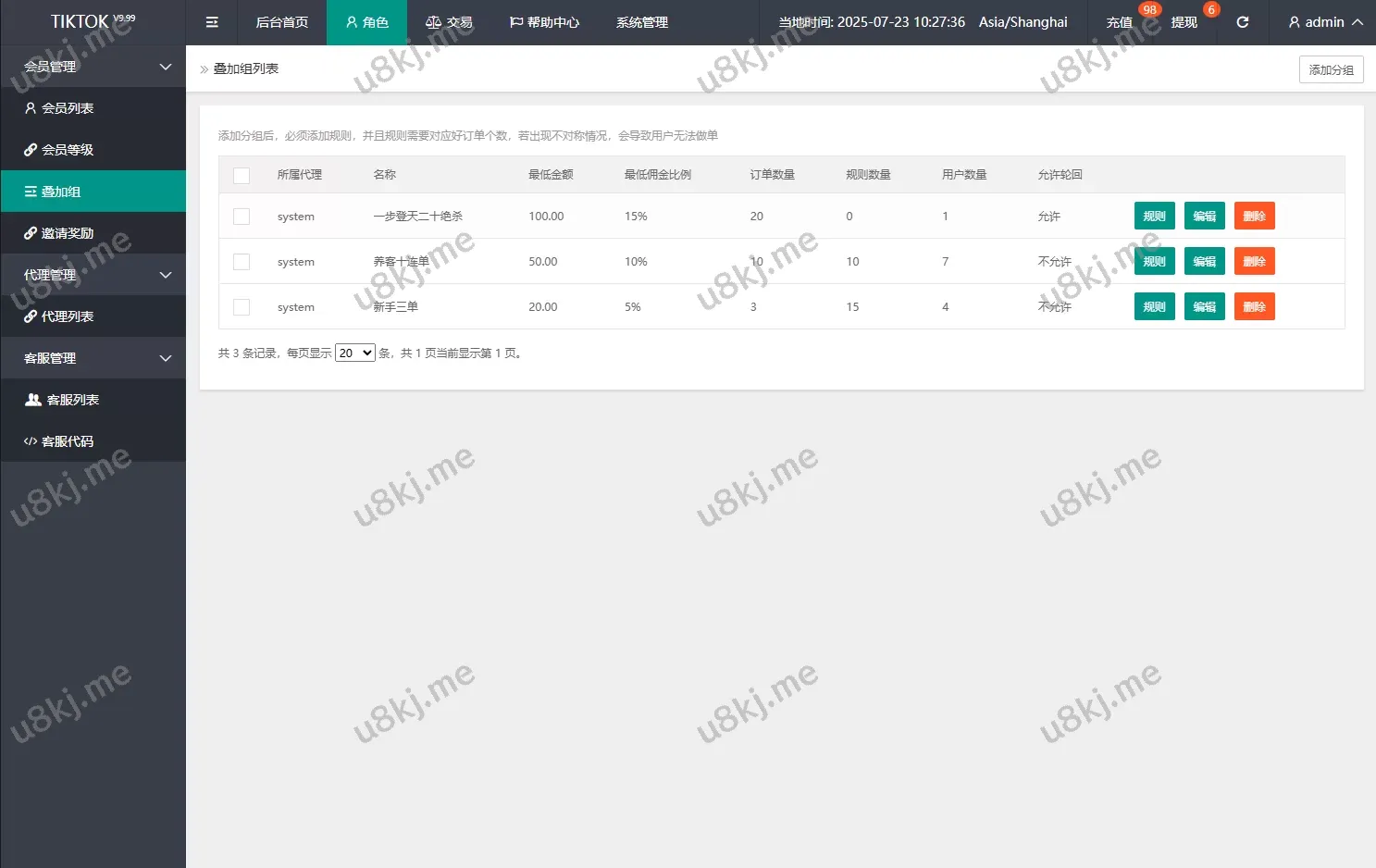 源码功能:信用分、打针、做单、叠加组、利息宝等功能