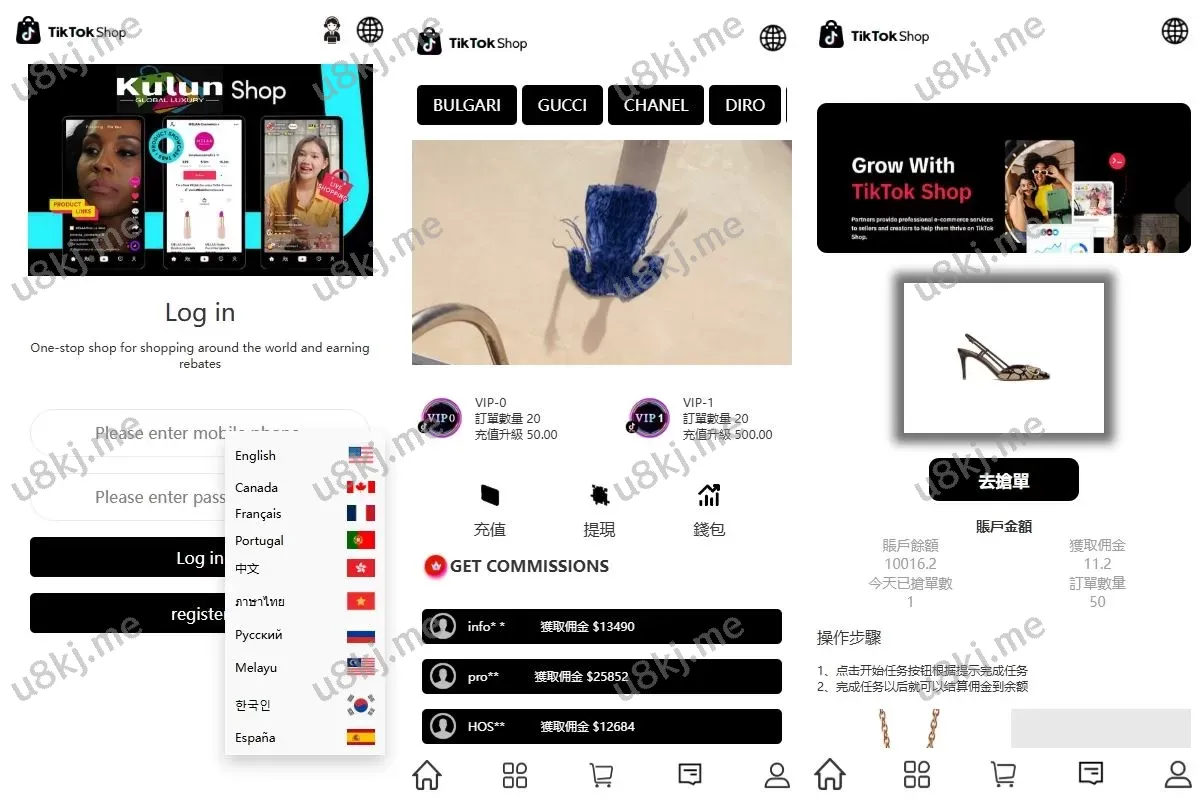 多国语言切换TIKTOK抢单刷单源码/连单卡单/打针/前端uniapp源码
