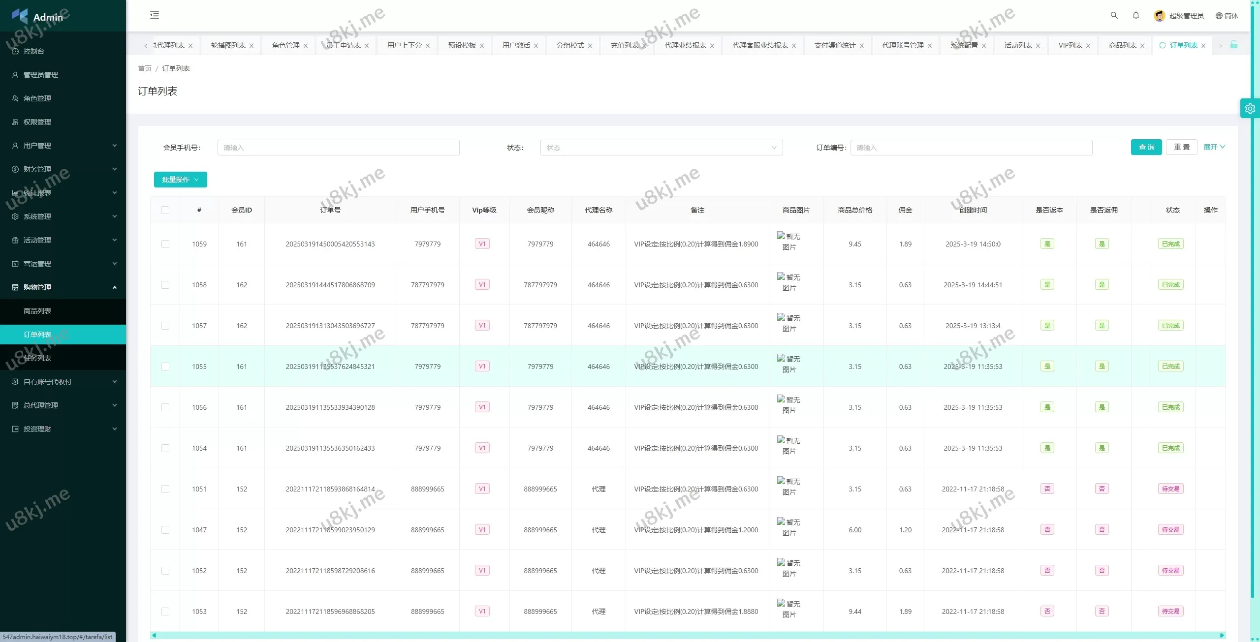 ✅ 代理管理:支持总代理和代理端的管理功能,管理员可控制代理权限。