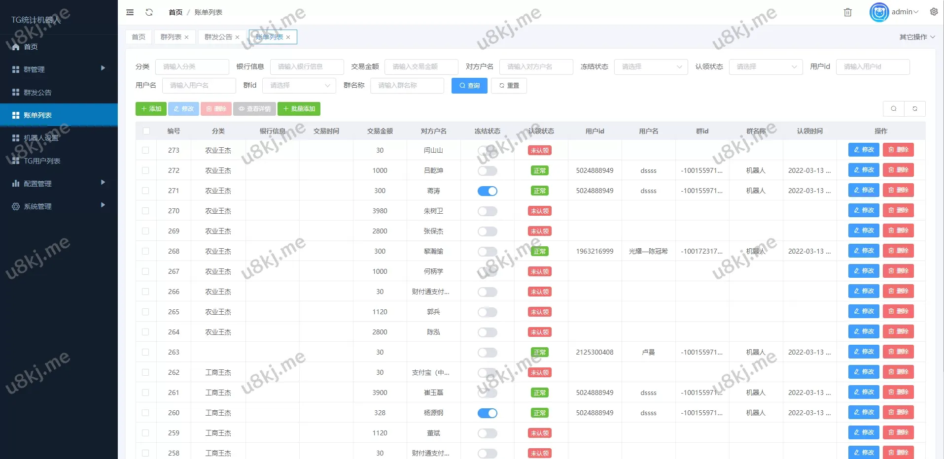 修复版TG统计机器人 – Telegram自动记账机器人,轻松管理财务与数据统计 修复版TG统计机器人是一款专为Telegram用户设计的智能工具,支持自动记账、数据统计和财务分析功能,帮助用户轻松管理个人或团队的财务收支。无论是日常开销、项目预算还是收入统计,都能通过简单的指令快速完成。源码操作便捷,数据安全可靠,适用于个人、企业及社群管理。立即添加,体验高效的Telegram记账与统计服务! 别人定制的TG统计机器人,后台功能强大 账单可后台一键导入,源码全开源无加密 28 28源码 BC DAPP H5 PG电子 PHP源码 uniapp 亚马逊 交易所 交易所源码 伪交易所 伪交易所源码 六合彩 刷单源码 加拿大28 区块链 区块链源码 印度红绿灯 印度股票 商城源码 外汇源码 彩票源码 微交易源码 微盘源码 快三 投资源码 投资理财源码 抢单源码 挖矿源码 棋牌 海外投资源码 海外源码 海外理财源码 海外项目源码 理财源码 电子游戏 皇冠体育 盗U 盗U源码 矿机源码 秒合约 空降约炮 精品源码 股票源码 色波 菠菜 质押理财 足球源码 跨境商城 跨境电商 项目投资 项目投资源码