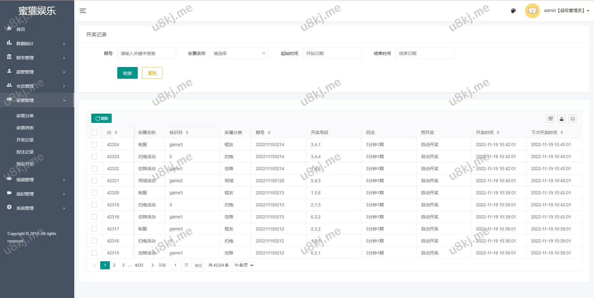 所有彩种都是源码彩,后台可控制,带开奖脚本