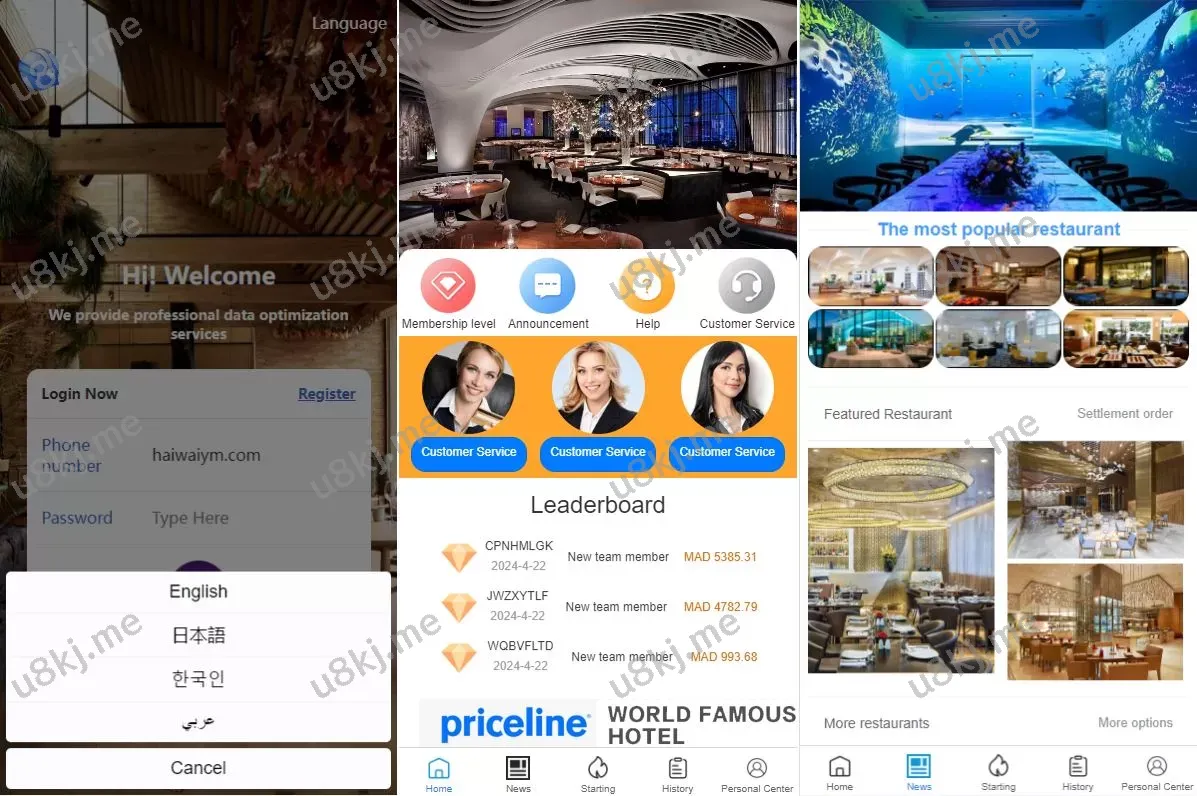 修复版UI酒店刷单抢单源码/酒店卡单连单/前端uinapp源码 主要功能亮点: 前端UI二次开发定制,采用uinapp开发,带完整源码。 后端使用PHP的thinkphp框架,源码全开源。 新增多国语言切换支持:阿拉伯语、英语、日语、韩语。 后端支持卡单、连单功能,完美运行。 源码支持权限代理功能,功能完善。 源码全开源,适合二次开发,帮助用户更好地进行多国语言切换扩展和功能定制。 抢单刷单源码