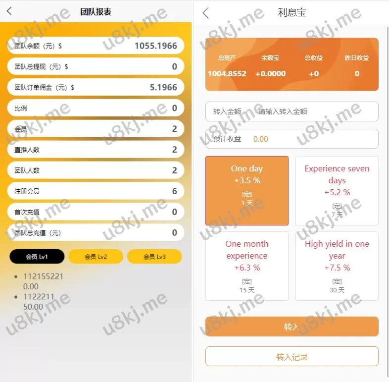 💰 余额宝功能,支持用户资金管理,余额互转。