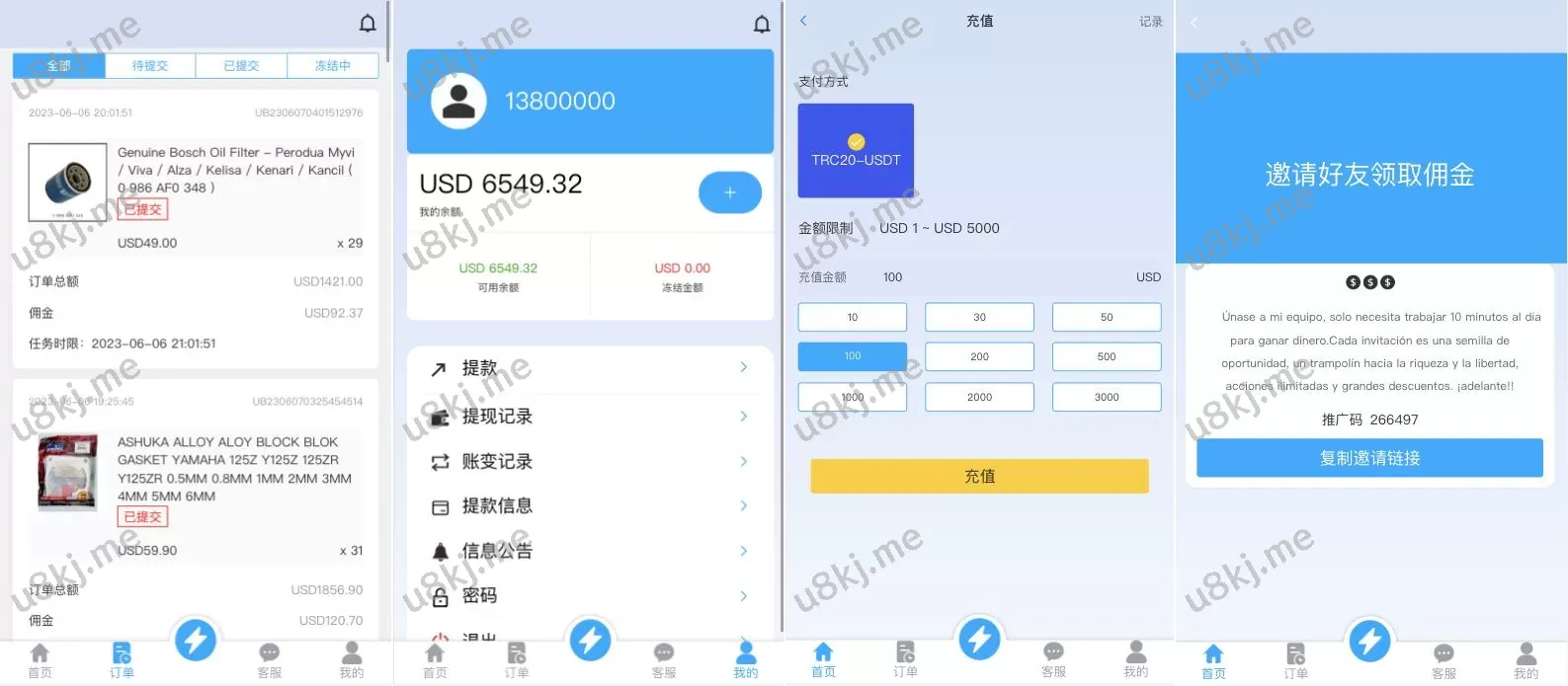 ✅ USD₮充值与代理管理:后台支持USD₮充值,带权限代理后台,灵活管理用户权限
