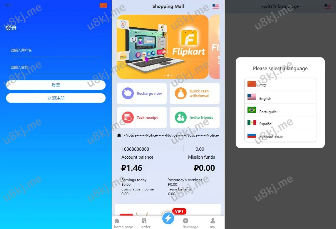 双UI多国语言切换抢单刷单源码/分组派单/订单自动匹配源码 🌟 主要功能亮点 ✅ 二次开发二开源码,非以往框架开发,性能更优✅ 前端双UI设计,支持后台自由切换✅ 多国语言切换支持,后台可设置默认语言(附带多个语言包)✅ 智能订单管理,支持订单待结算、超时冻结、手动解封✅ 分组派单源码,按分组规则派单,未分组时按会员等级匹配 📌 源码全开源,支持二开定制,适合多国语言切换市场运营! 抢单刷单源码