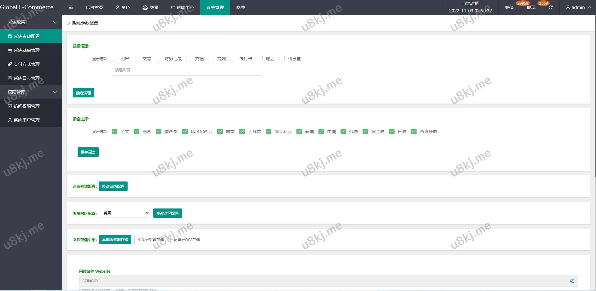 - 前端多国语言切换支持,后台可自由控制默认语言与时区