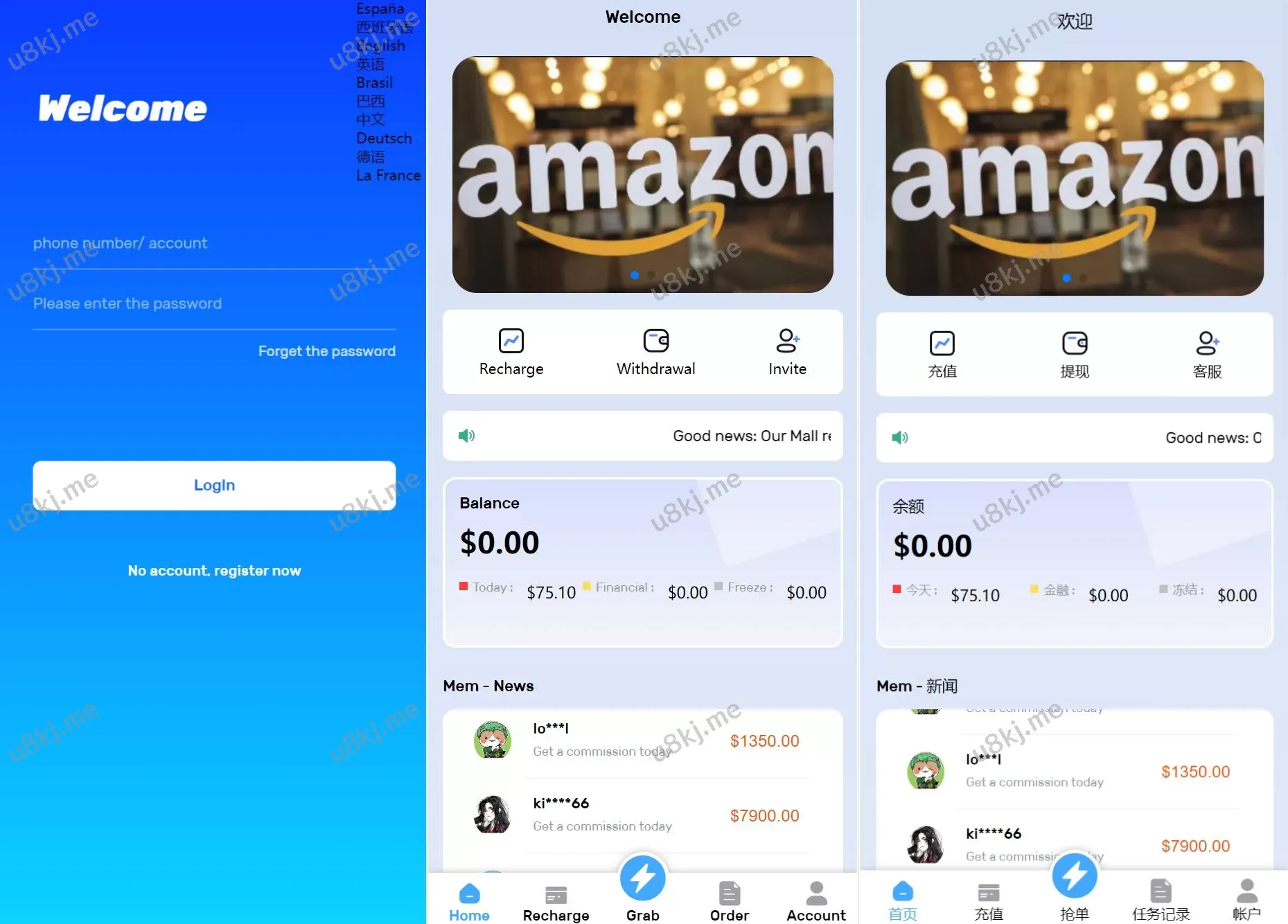多国语言切换亚马逊自动抓取订单返佣源码源码_叠加组+电商抢单刷单平台