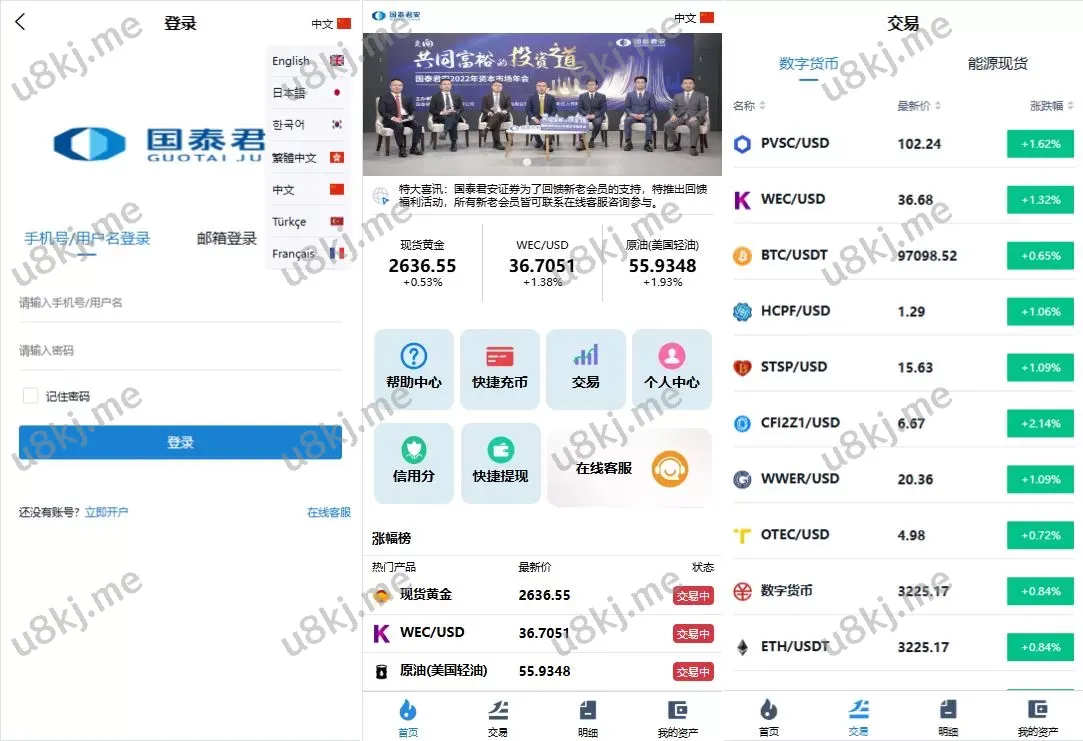 微交易源码 | 虚拟币&黄金期货微盘 | 多国语言切换秒合约微盘【源码】