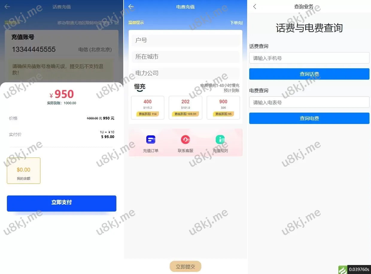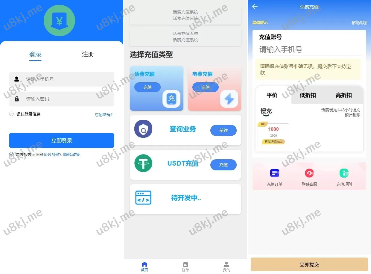 智能话费 & 电费慢充源码,支持多渠道跑分与自动结算
