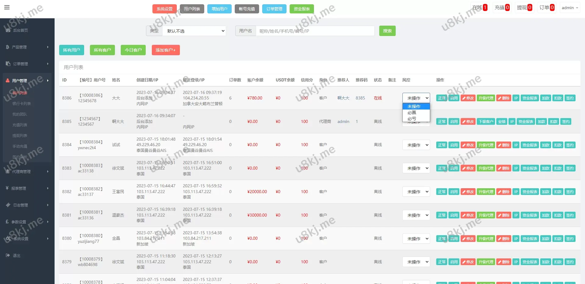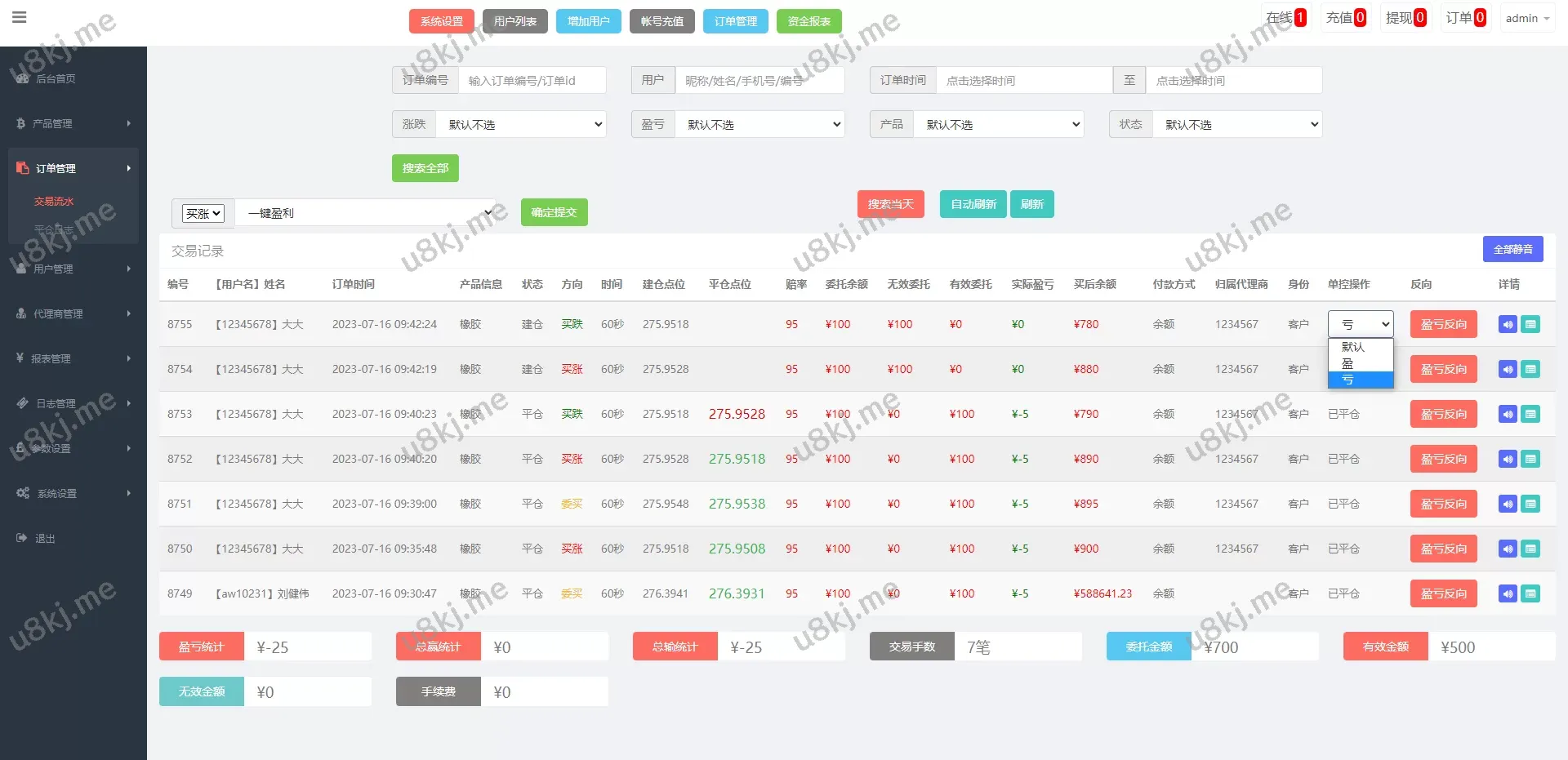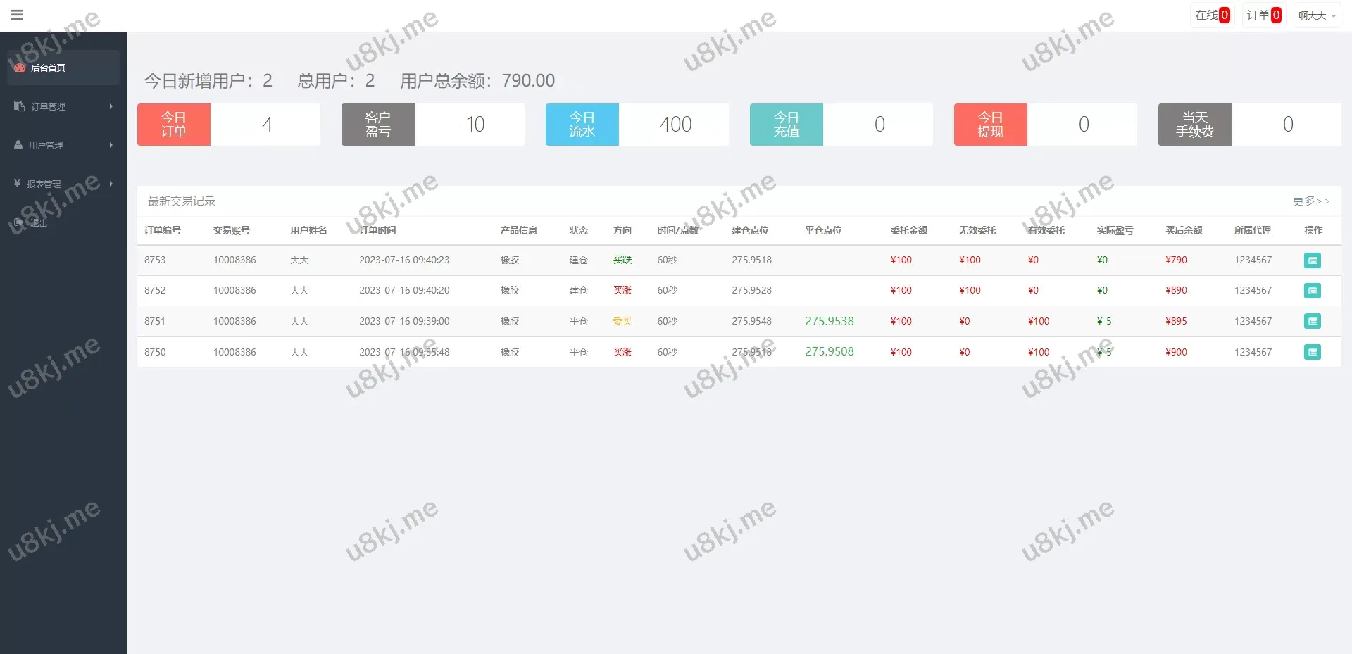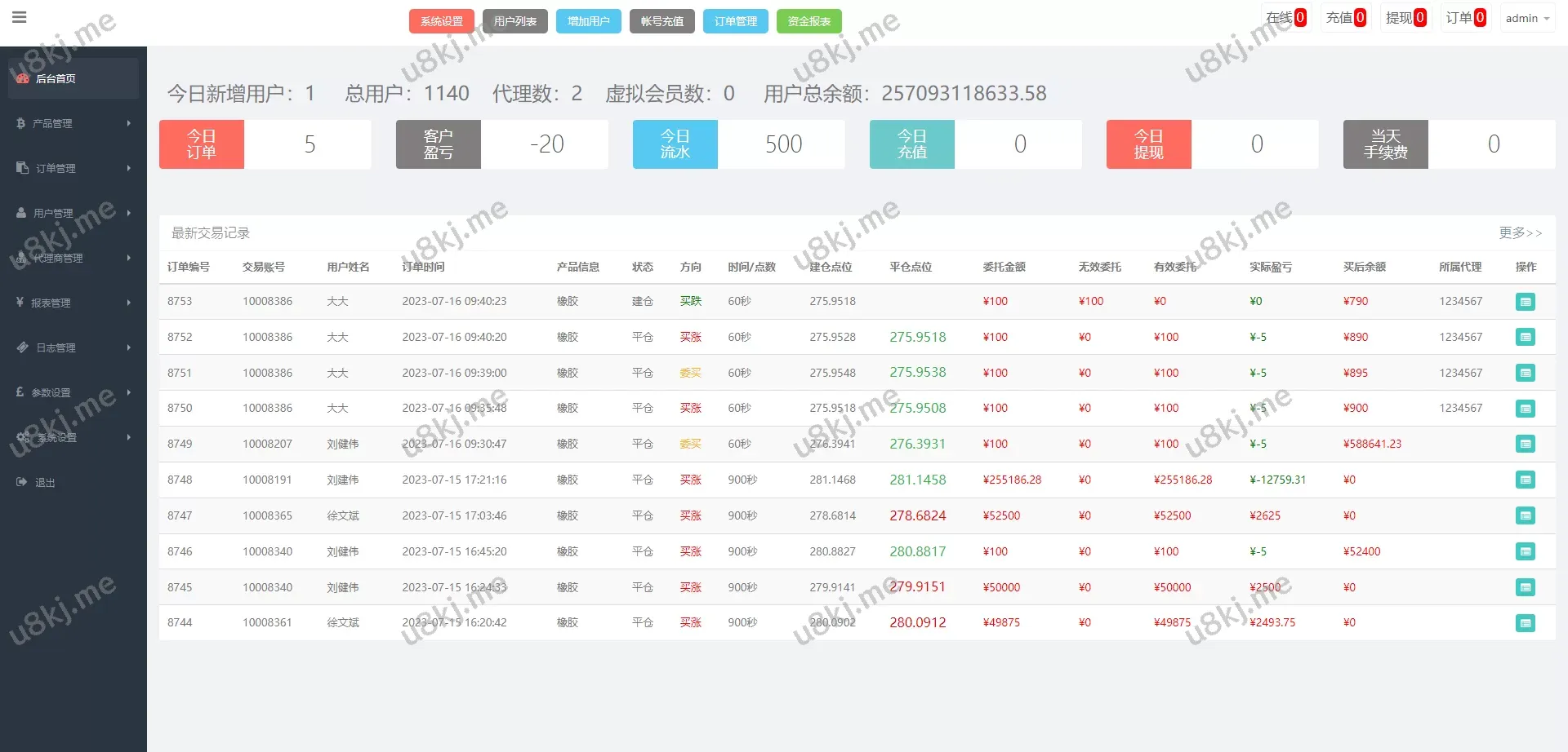 运营版微盘期货交易源码/微交易源码/代理后台/用户风控源码