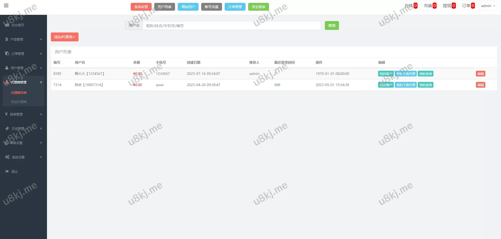 ✅ 代理后台管理:新增代理后台,方便管理代理商和用户