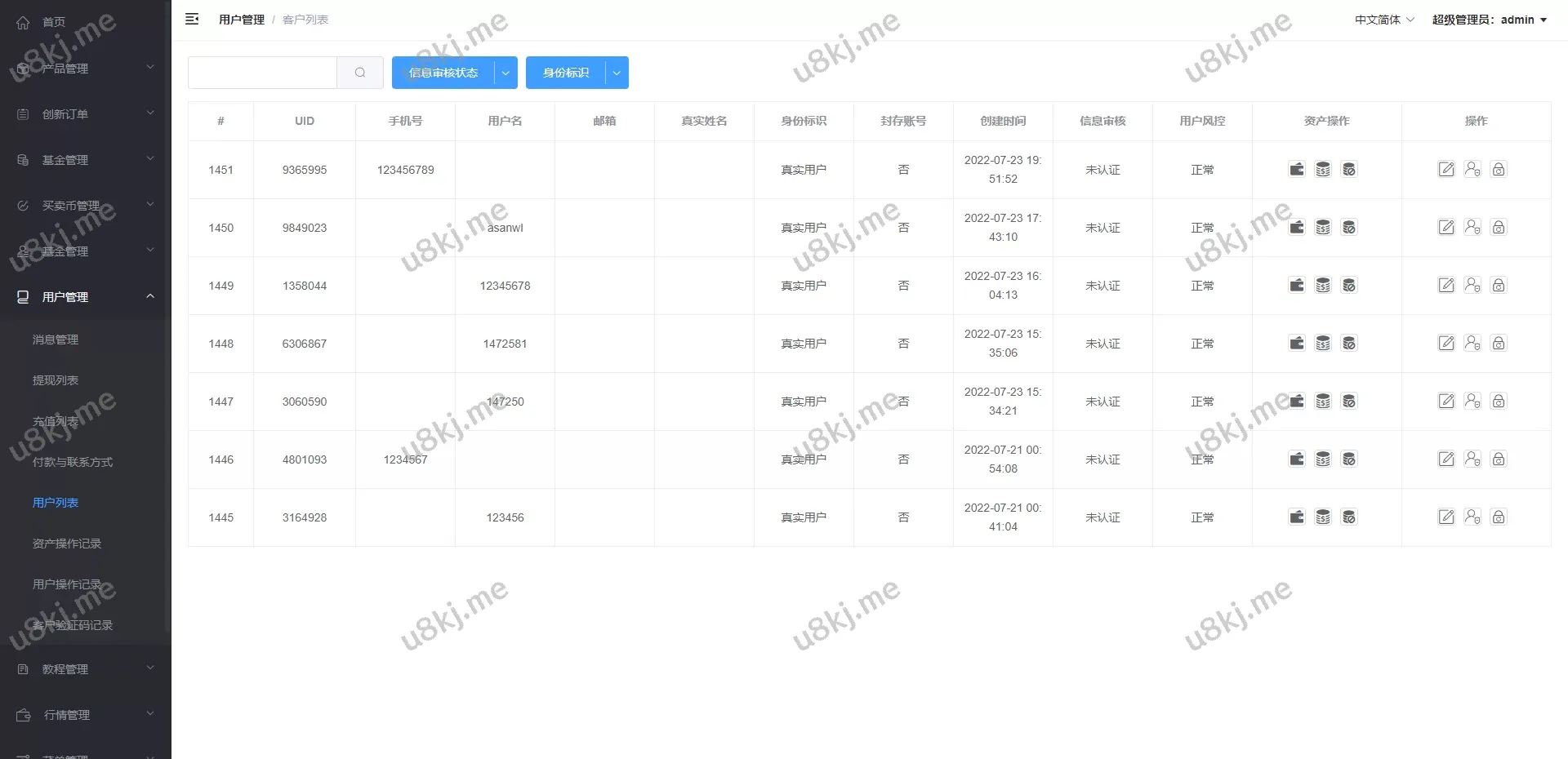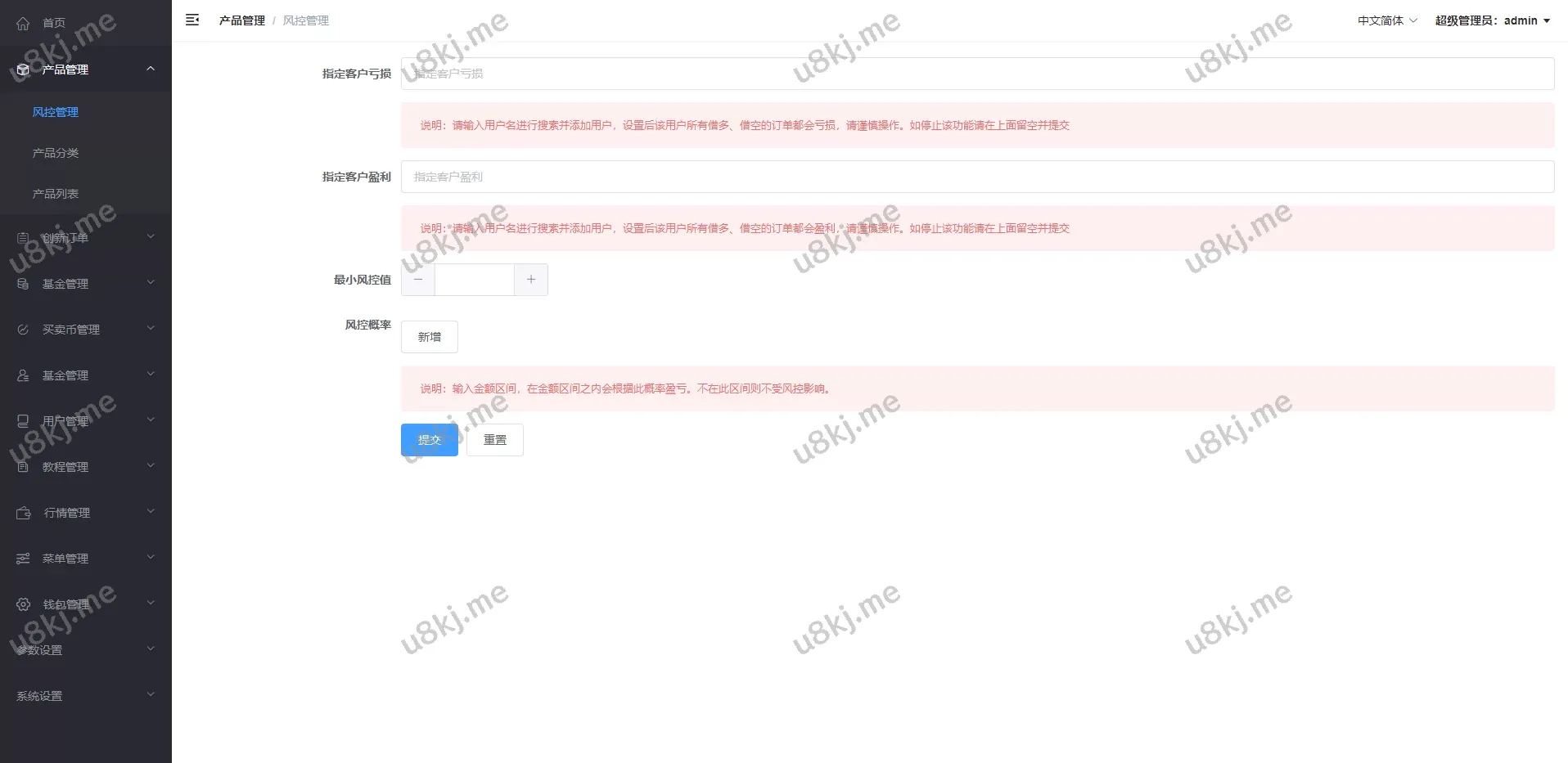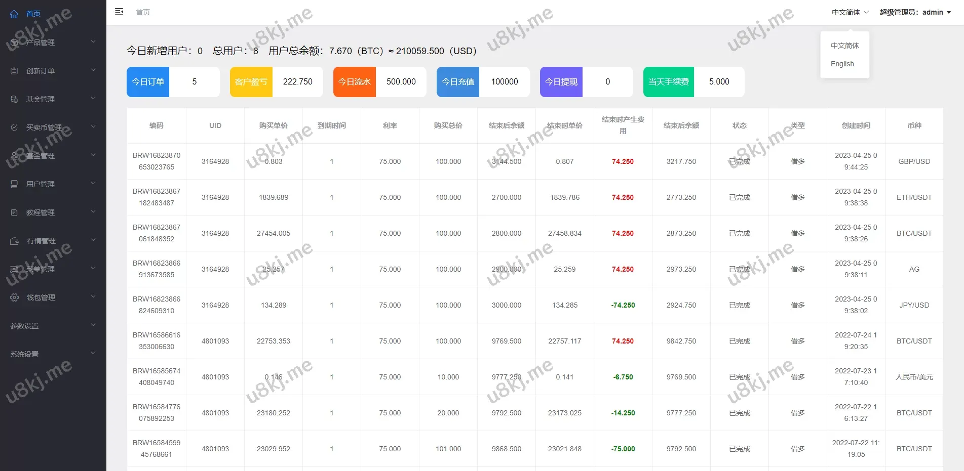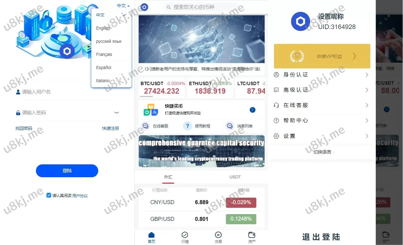✅ 后台功能丰富:包括理财、挖矿、法币等功能选项,但需二开后端界面进行展示