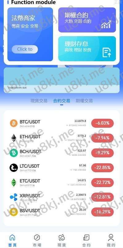 投资理财,新币认购,法币交易,社区聊天,签到等功能