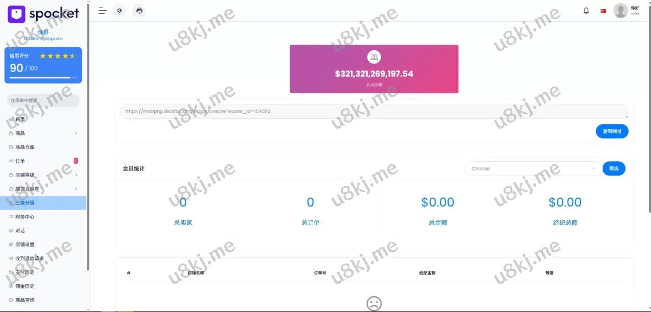 7.店铺等级功能 可设置产品上传限制 套餐时长 及每个等级的利润 让客户进行升级可提升利润当然可以设置 每个等级购买需要多少钱