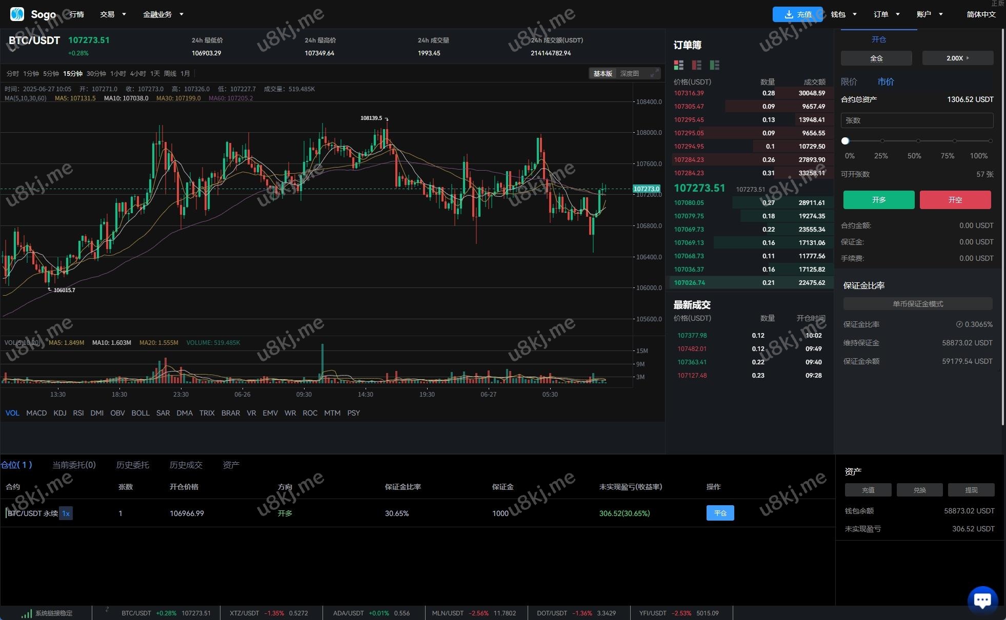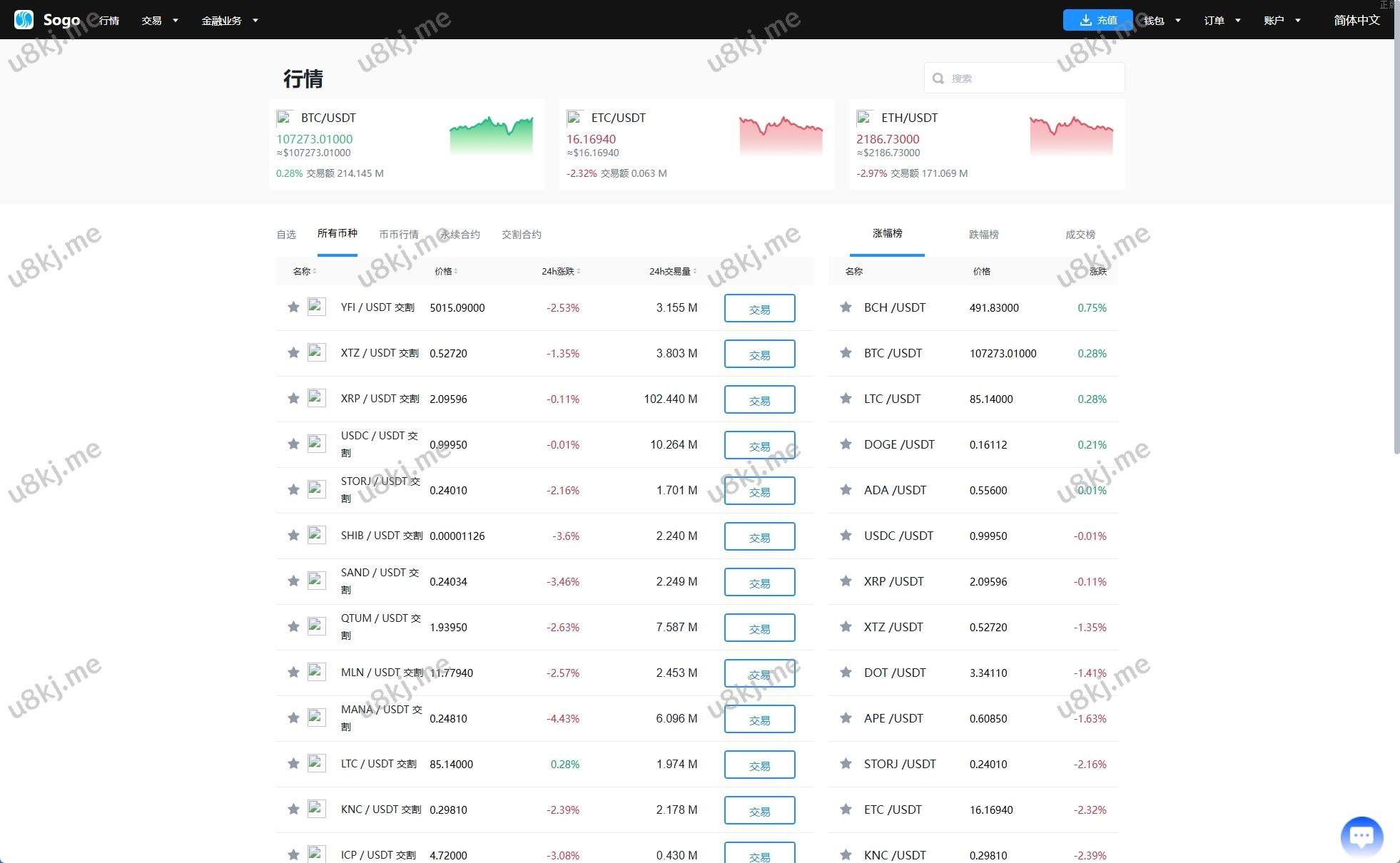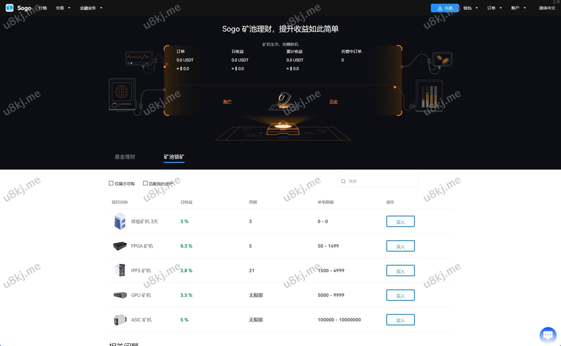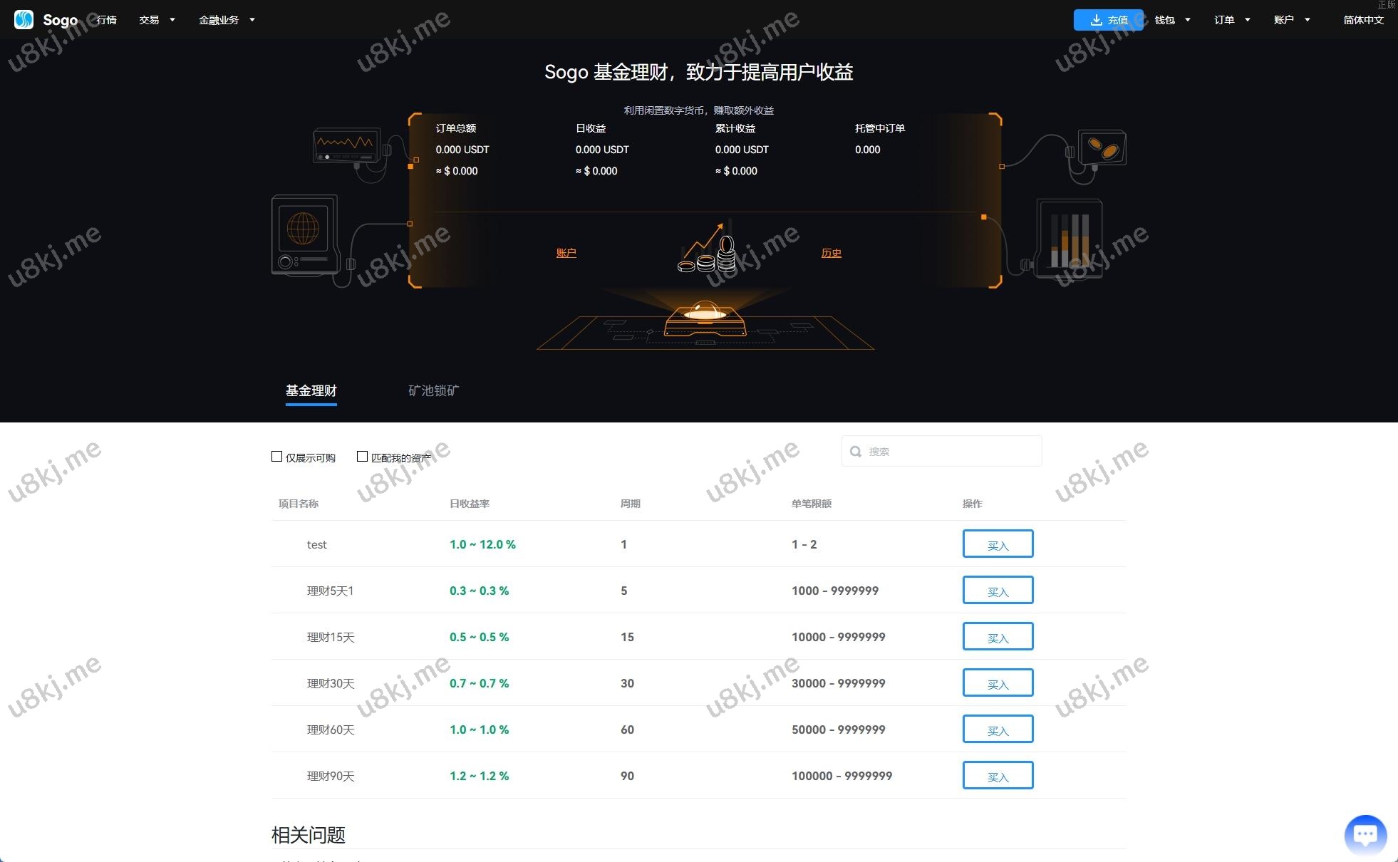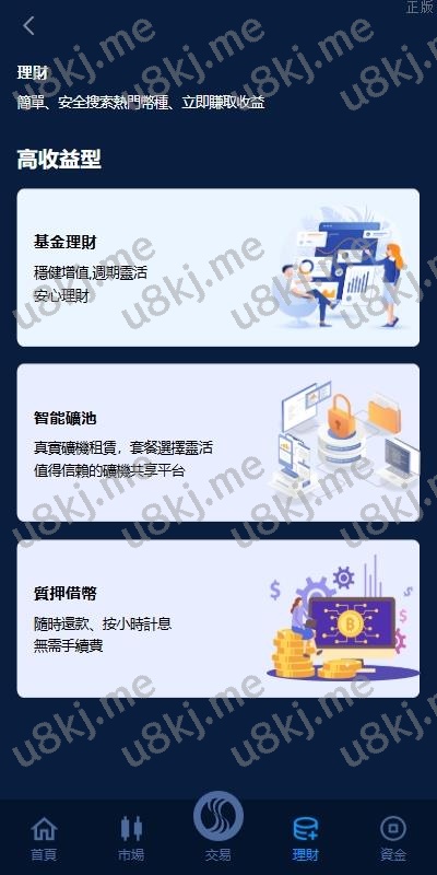 系统功能:永续合约、交割合约、现货交易、理财、矿池、质押借币等功能