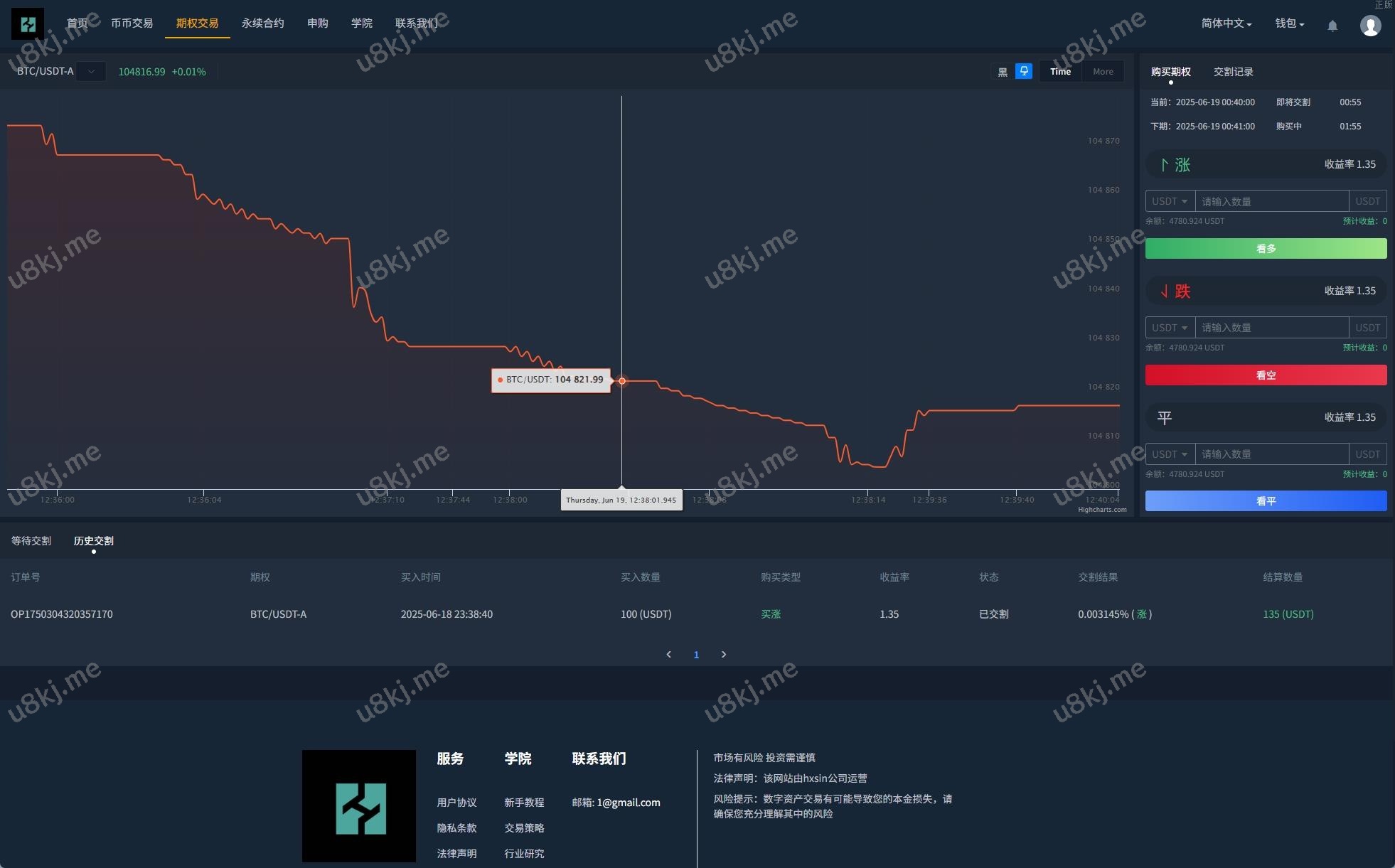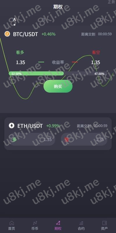 功能:币币交易,挖矿理财,申购新币,系统发行币,合约杠杆,秒合约交易,期权交易,平台币