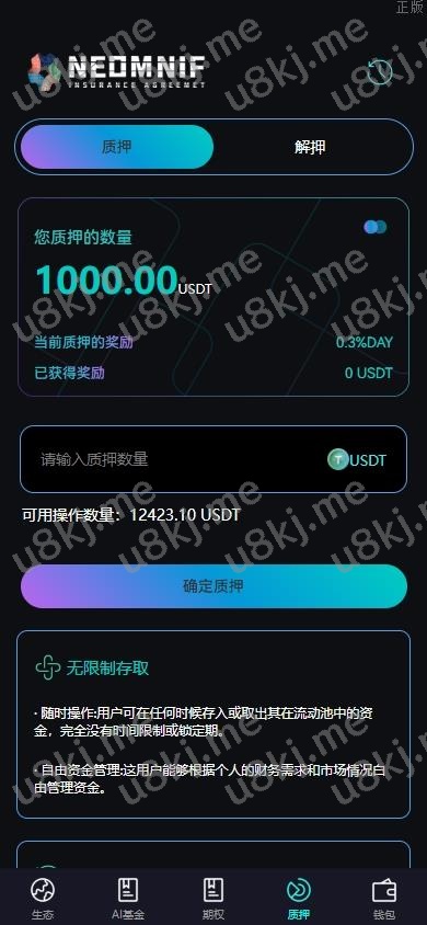 灵活质押:支持 USD₮ 等资产的无限制存取,无锁定期