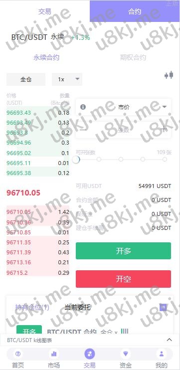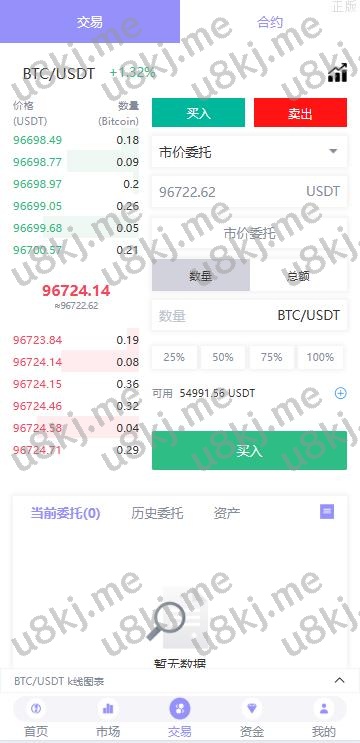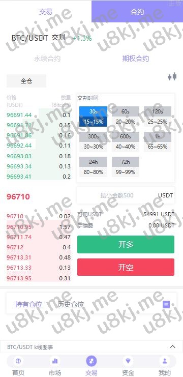 系统功能:币币交易、永续合约、期权交易、闪兑、理财、借币、邀请等功能