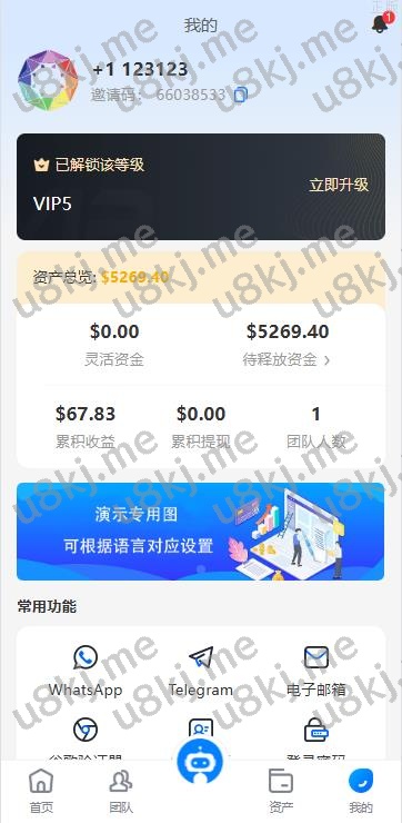 19、代理线功能,后端开启用户为代理,即可登录代理端查看代理下级用户情况