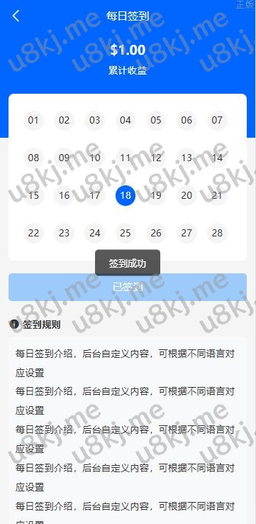 23、每日签到,用户每日可通过签到获得积分和奖励