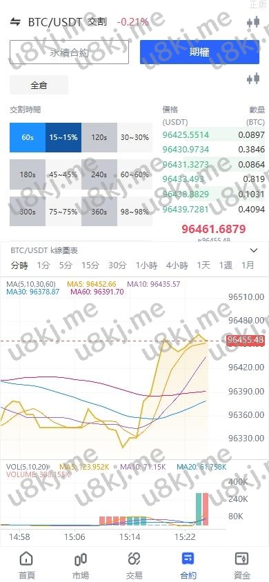 系统功能:币币交易、永续合约、期权交易、闪兑、理财、借币、邀请等功能