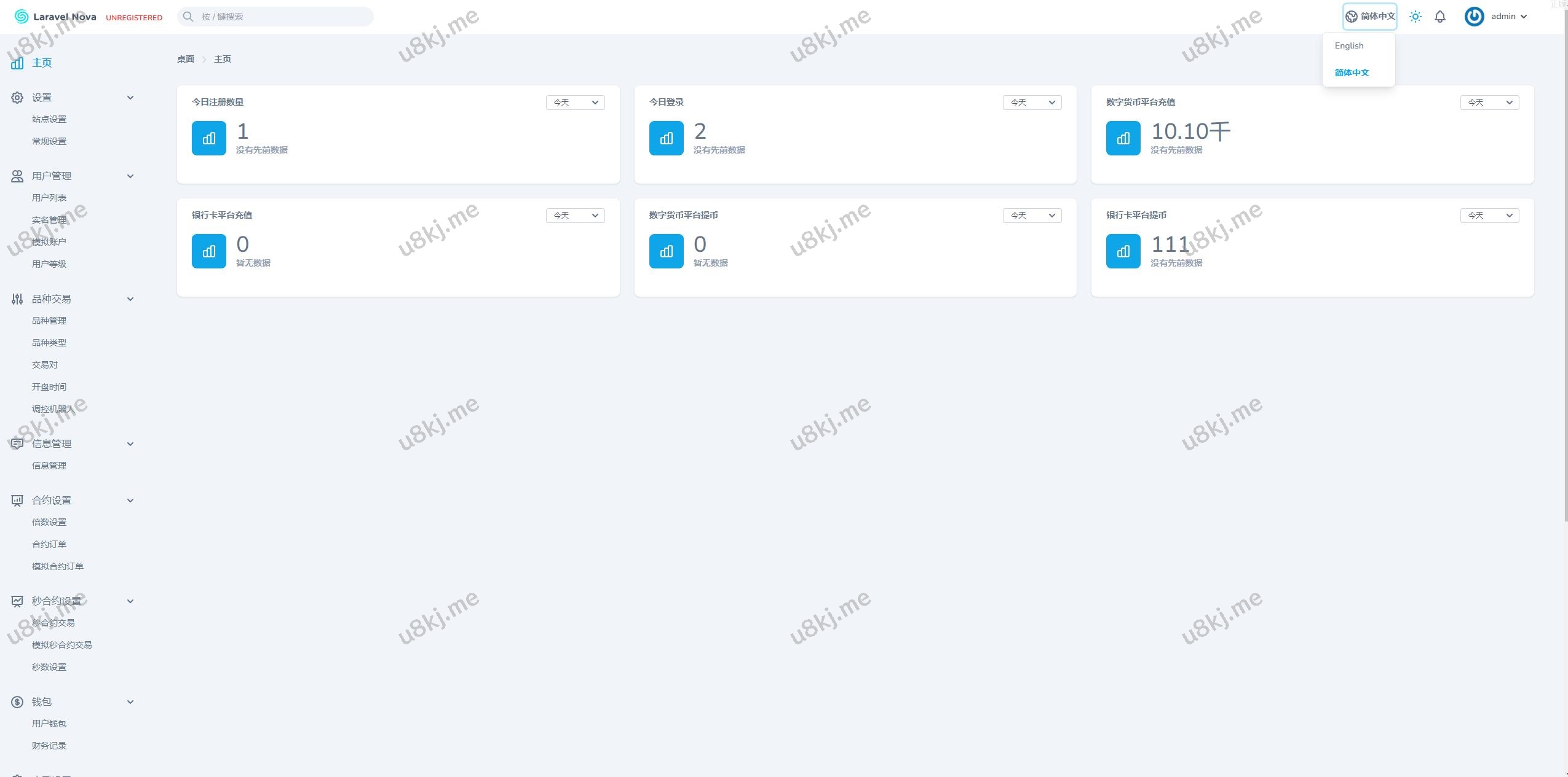 后台和代理后台都可中英文切换