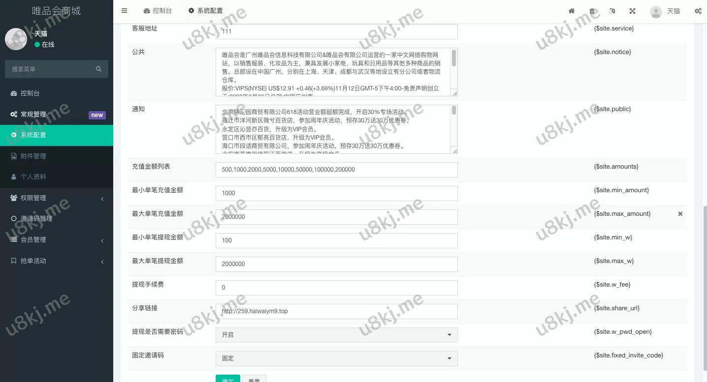 唯品会商城优惠卷投资源码/奢饰品投资理财源码源码 主要功能亮点 ✅ 二次开发开发源码:基于唯品会商城优惠卷投资模式,后端使用FastAdmin框架✅ 充值与投资:前端用户注册后可联系客户充值余额,领取优惠卷进行投资✅ 活动管理:后台可为不同会员设置专属活动,灵活配置投资理财项目✅ 优惠卷投资:前端会员领取优惠卷后可进行理财投资,适用于奢饰品等多种理财产品✅ 易于定制:源码支持个性化定制和功能扩展,方便二次开发 📌 适用于奢饰品、购物优惠卷等理财投资项目,灵活配置会员活动与投资方案 商城系统 项目投资理财