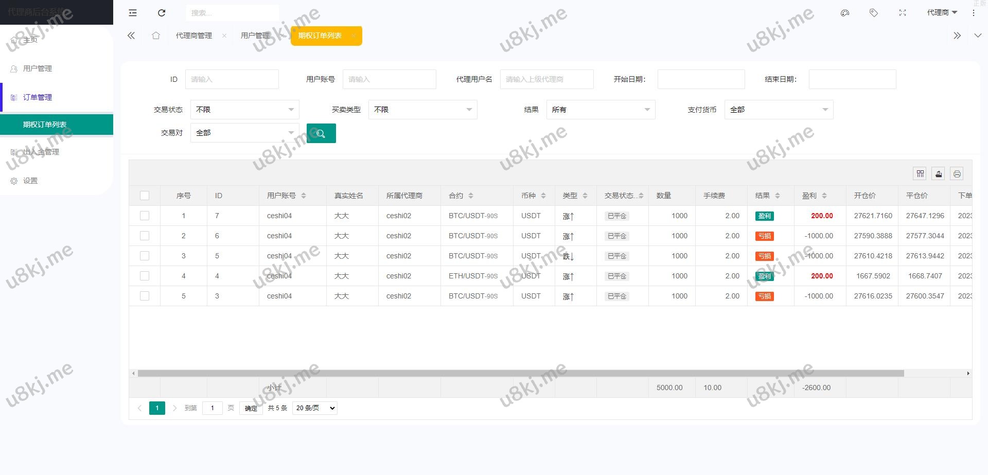 6.支持代理后台,增加代理线各项数据展示列表