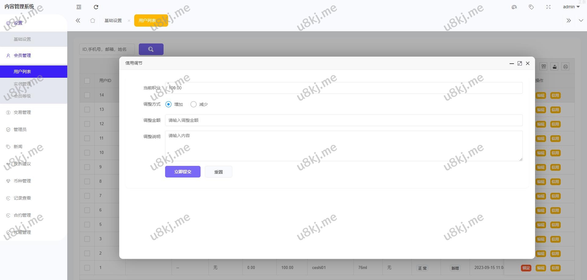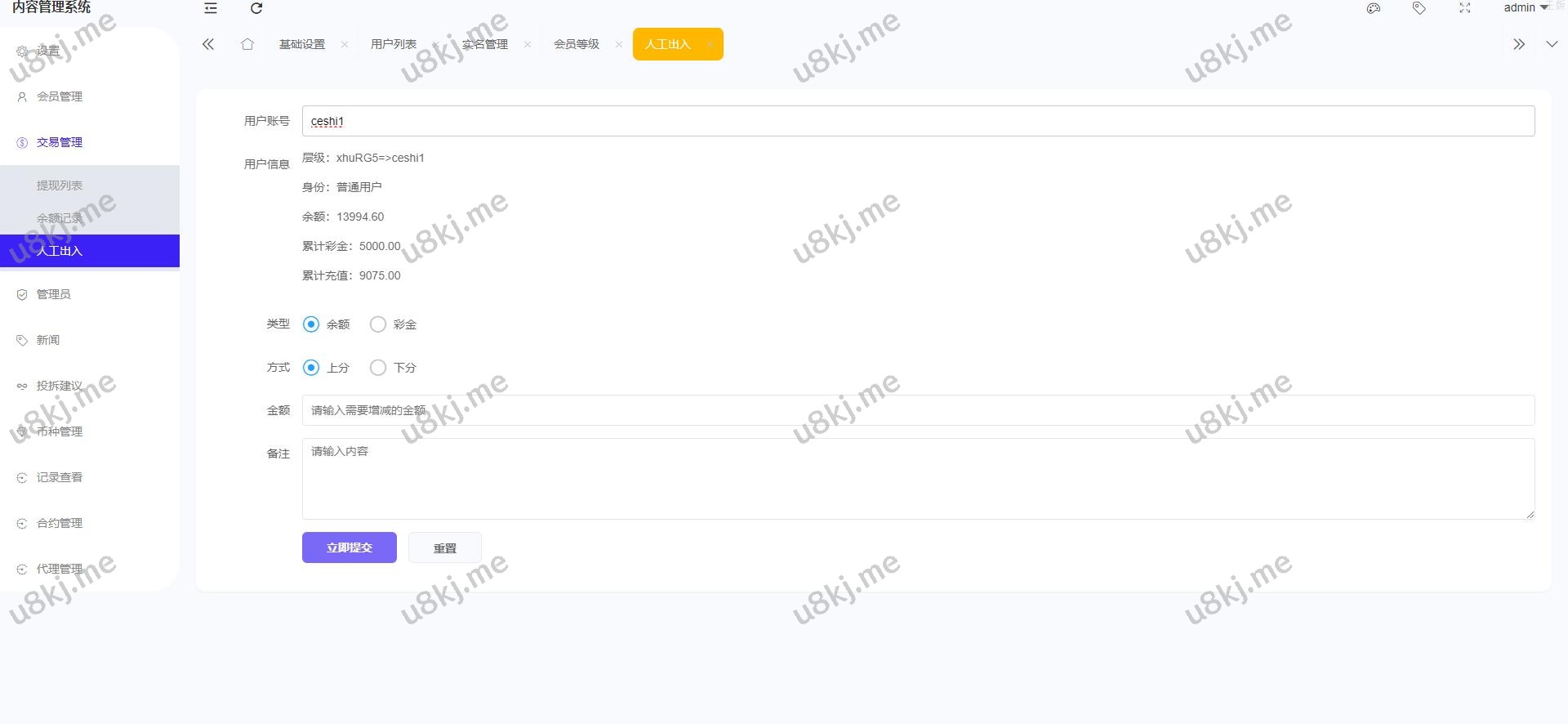 4.后台增加手动上分下分功能